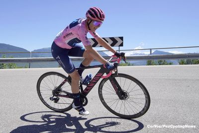 Annemiek van Vleuten wearing pink (2022 Giro Donne) and pedaling in the Vento Powerstrap Aeroweave shoes