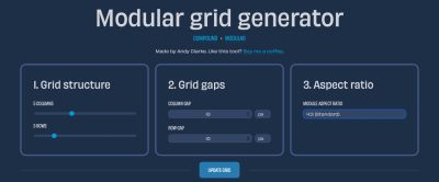 This new Modular grid generator lets you choose the number of columns and rows you need for your modular grid. You can also specify the column and row gaps in px, em, rem, and % units. Lastly, you can choose from a selection of common aspect ratios for your modules.